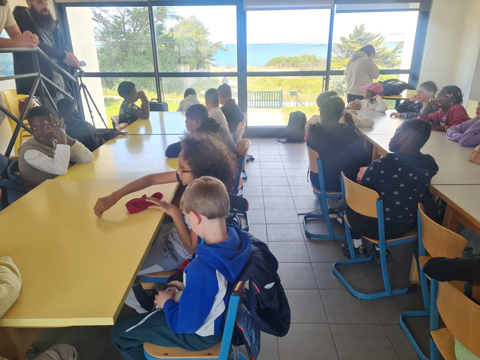 Jeudi 23 avril 2026: Encore une très belle journée s’annonce pour le groupe sous un ciel bleu turquoise et un magnifique soleil. Ce matin, les enfants partent en balade lors de laquelle ils vont découvrir la faune et la flore de l’isthme de Penthièvre avec un animateur spécialisé. Pour le déjeuner, salade de tomates mozzarella suivie d’un filet de poisson frais avec épinards à la crème bio. Pour le dessert, une mousse au chocolat. Cet après-midi, séance de chars à voile sur la plage! Au menu ce soir, hachis de la mer (cocktail de fruits de mer) et salade verte. Pour finir, un gâteau.